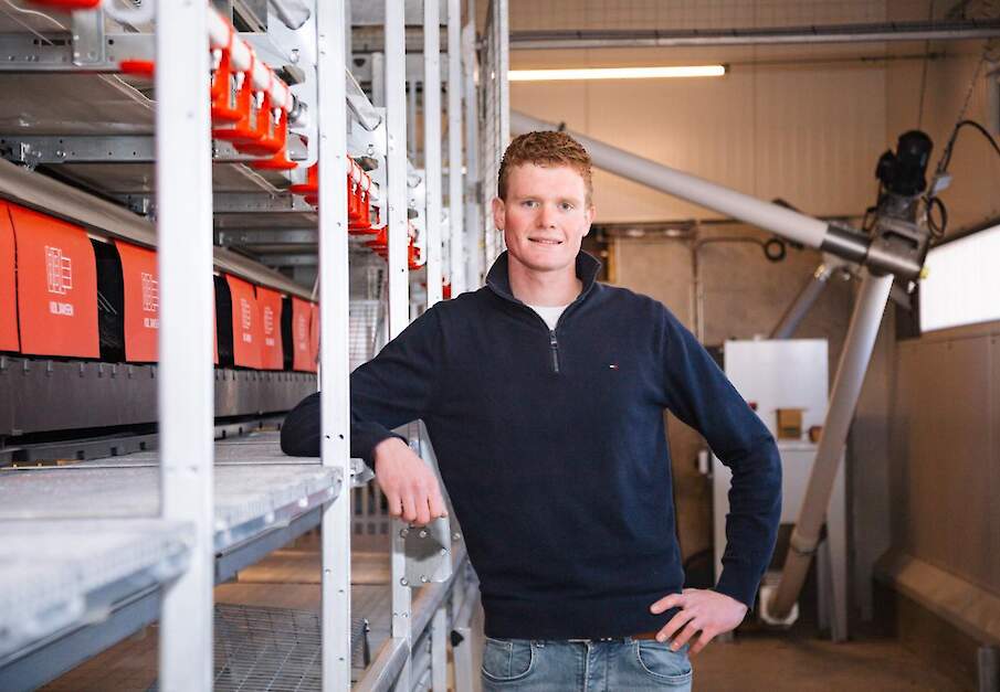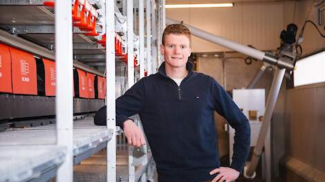 Akkerbouwer Willem Jan Oosterhuis (22) uit het Groningse Uithuizermeeden kiest voor vrije-uitloophennen als tweede tak naast akkerbouw vanwege de goede vooruitzichten op de eiermarkt.