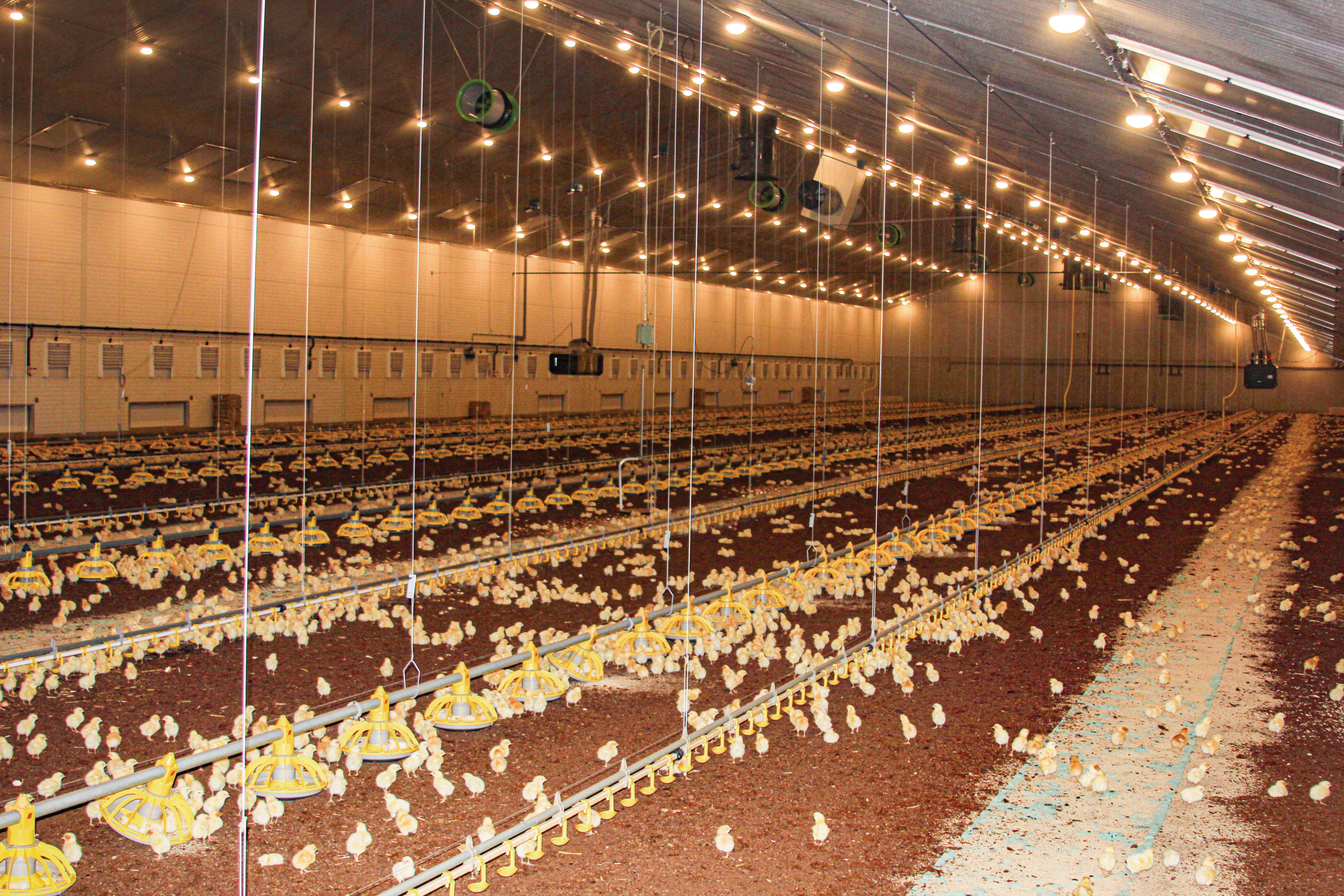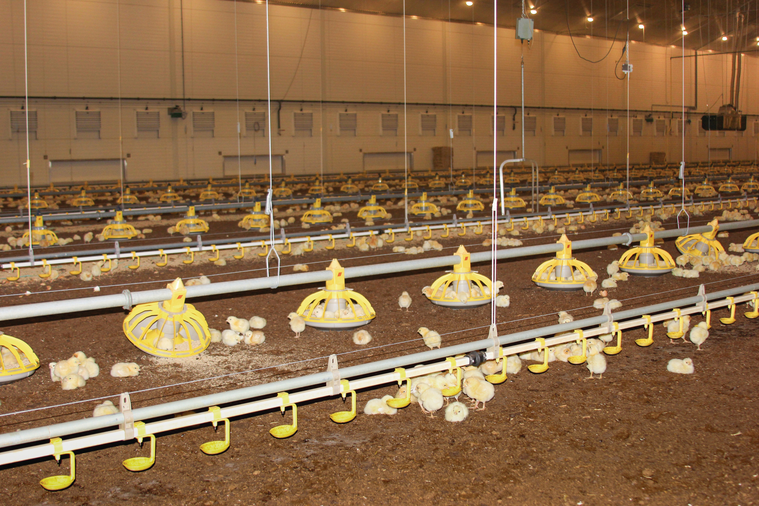 Sinds ruim een jaar zet hij Ranger Gold-kuikens op in plaats van Hubbard JA 757. „De uitval is iets hoger en ligt hier tussen de 1,5 en 2 procent. De voederconversie is echter minimaal 4 tot 5 punten beter en ligt tussen de 1,80 en 1,86 tegenover 1,92 tot 1,96 bij Hubbard. Daar zit de winst. Doordat de kuikens iets minder hard groeien heb ik geen problemen met een te hoge daggroei.” Bij de Hubbard-kuikens startte hij altijd op met een staltemperatuur van 35 graden Celsius en nu met 34 of 34,5 graden. „Ik meet de eerste dagen altijd de cloaca-temperatuur en heb het gevoel dat je bij de Ranger Gold-kuikens beter kunt starten met een iets lagere staltemperatuur. Al vinden sommigen een opstarttemperatuur van 35 graden te warm voor Hubbard-kuikens. Hierover zijn de meningen verdeeld”, zegt Hans.
