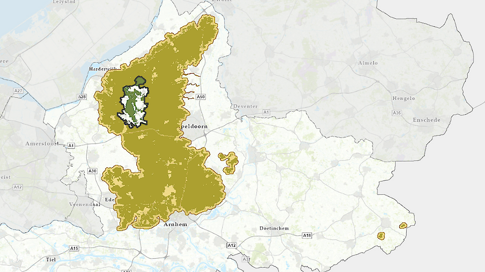 In de gebieden rondom de natuurgebieden komt ook een verbod op stikstofhoudende kunstmest. 'Het gaat om het extra deel boven het aandeel dierlijke mest, binnen de totale hoeveelheid mest die een gewas nodig heeft. Dit verbod gaat gelden voor alle grond die in gebruik is bij bedrijven, en dat zijn bijvoorbeeld ook golfbanen en maneges.' De regel gaat begin 2030 in, als het aan Gedeputeerde Staten van Gelderland ligt.