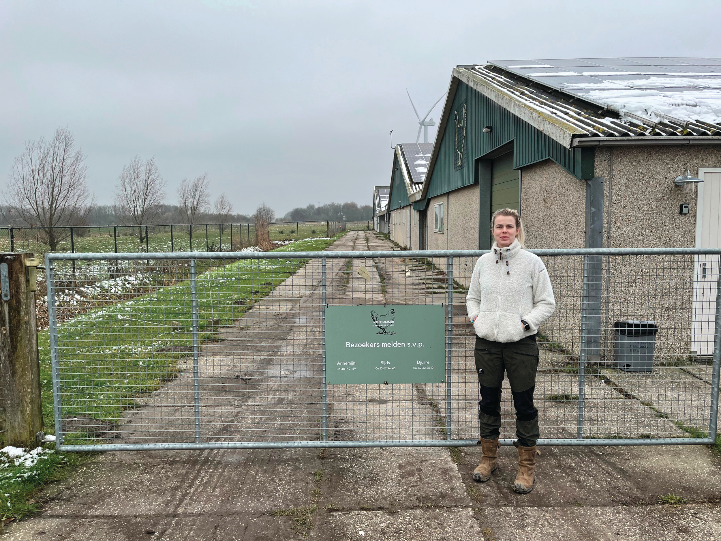 Griendijker B.V. uit Zeewolde (FL) was een van de legpluimveebedrijven die mee deed aan het Biosecure-onderzoek. Op het biologisch leghennenbedrijf is biosecurity geen papieren protocol, maar dagelijkse praktijk. „We proberen elke dag te verbeteren”, zegt Annemijn Dijkstra. De pluimveehouder werkt stap voor stap aan verbeteringen. Niet omdat iemand haar dat oplegt, maar omdat ze zelf de risico’s wil verkleinen. Dijkstra (33) is zeer betrokken en gemotiveerd.