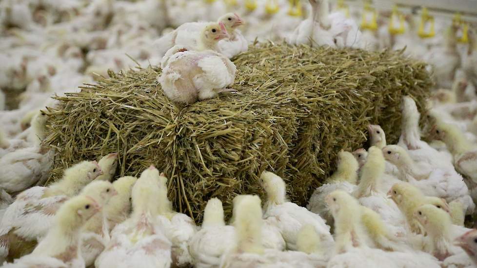 De eerste tijd na de opzet van de eendagskuikens zijn de lamellen gesloten omdat dan er teveel licht is waardoor de verdeling van de eendagskuikens in de stal slecht is. Een kuiken zoekt dan de donkere plekken op. De kuikens zijn ook actiever door het daglicht, maar dat is ook deels een ras eigenschap. Vanwege de grotere activiteit is het ook handiger dat deze kuikens s nachts worden gevangen, vertelt Pietie Pollema.