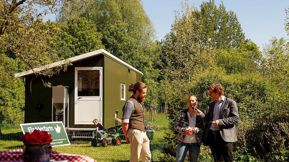 Peter en Esther van Agt openden in juli 2017 de eerste kipcaravan. Daarin houden we 240 hennen en 9 hanen. Nu hebben we voor de broertjes van onze hennen ook een caravan gebouwd, vertelt Peter van Agt. Het aantal van 249 is bewust gekozen omdat 250 kippen de grens is voor hobbypluimvee. Fladderfarm mobiel heeft inmiddels een achttal caravans gebouwd waaronder de kipcaravan mini.