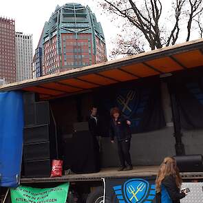 Sieta van Keimpema, bestuurslid FDF, treedt ook vanmiddag als eerste op het podium. „Het is tijd voor een beter verdienmodel en dat begint vandaag.” Dat verbeterde verdienmodel moet behaald worden door middel van het keurmerk FarmerFriendly. Tijdens de uitleg van FarmerFriendly werd onderstaande video vertoond op de demonstratielocatie. In essentie moet het salaris van de boer aangevuld worden door een percentage van de omzet van de supermarktketens in Nederland.