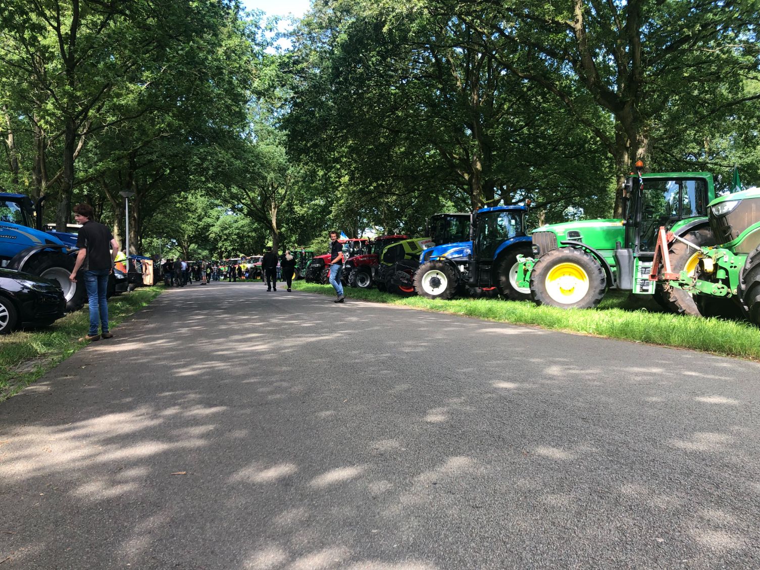 Er zijn bijna honderd trekkers onderweg naar Zwolle. Het gezelschap bestaat uit veel jonge boeren, ziet onze verslaggever. De sfeer is ontspannen.