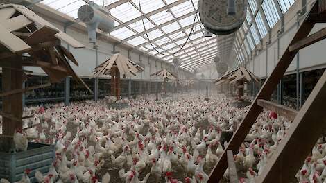 „Na openen van de uitloopschuiven in 1 ster Beter Leven vleeskuikenstallen kan de mechanische ventilatie op veel dagen uit als het CO2-niveau, RV-gehalte en de staltemperatuur op het juiste niveau zitten wanneer het buiten hard waait”, zegt Geert Mekkes.